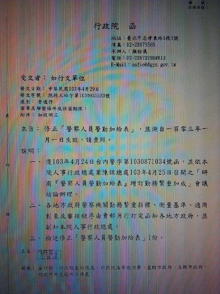 註三:警勤加給公文(資料來源:網路):